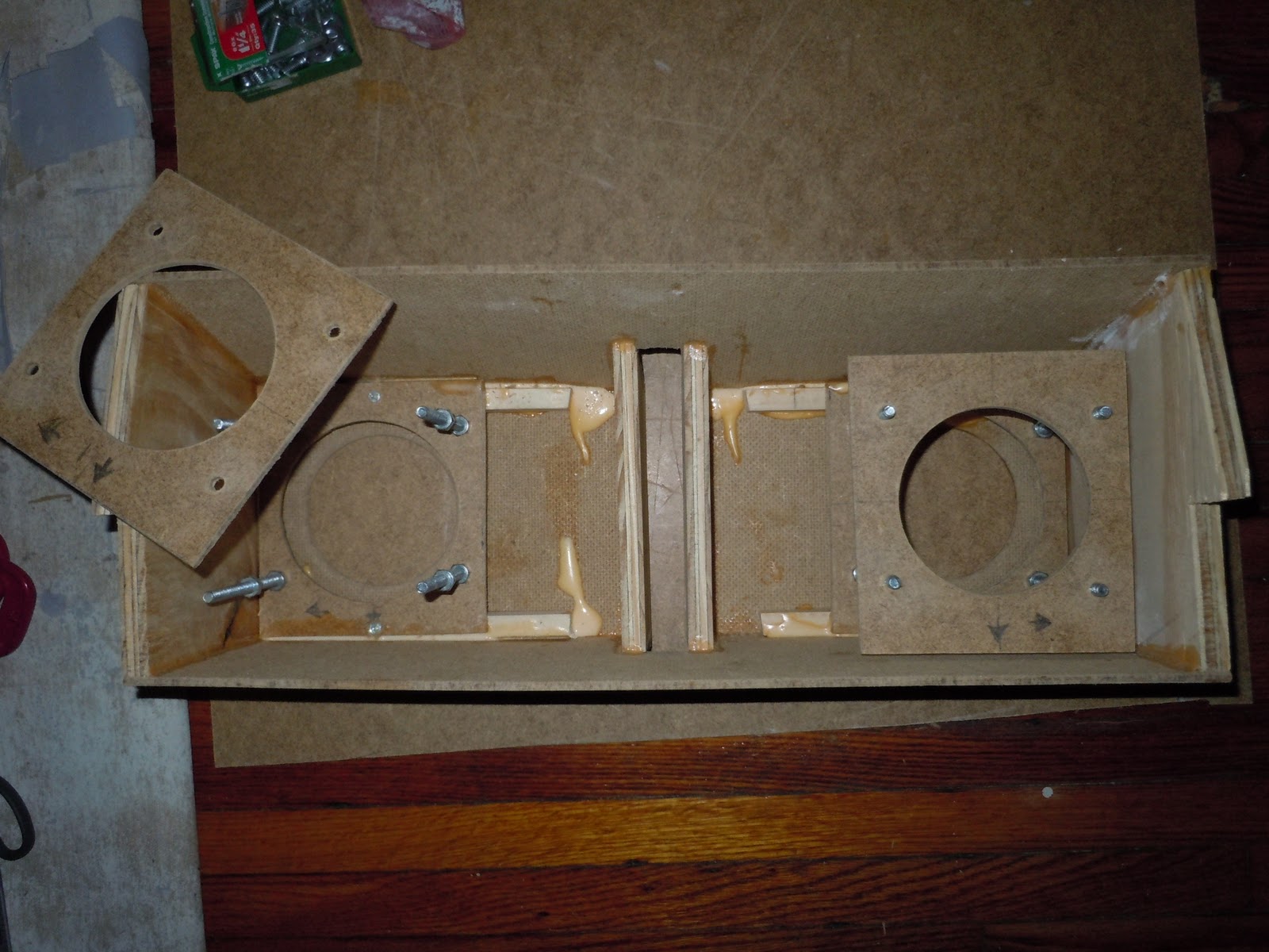 For the hinge bit at the back, I took some MDF disc cut-outs from the skirt panels and sandwiched them together to the right thickness and ran the PVC pipe through it. The back end of the pipe will attach to the eye stalk control mechanism (which I have yet to build.)